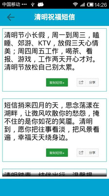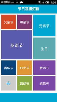 还在愁春节、中秋、国庆、情人节、圣诞节的祝福短信吗?本软件提供了各个常见节日的祝福短信,每个节日包含多条精选的祝福短信,让您与您的朋友架起沟通的桥梁。界面采用win8风格。在节日来临的时候,选择相应的短信发给您的朋友、亲人和爱人。