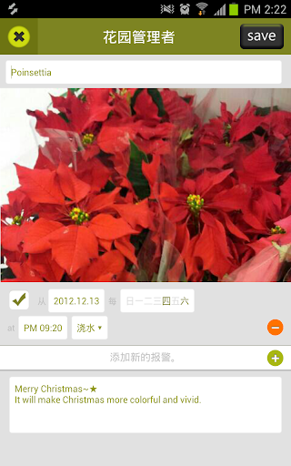 - 您可以设置警报,施肥,喷洒农药等。也可以自定义任务。