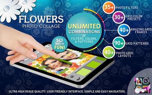 與此完全免費的應用程序更新您的新的三星Galaxy設備。加花框和花效果美化你的照片!偉大的照片特效,貼紙,文字和框架將幫助您做出獨特的花照片網格。用最美麗的紅色花朵,黃色的花,白的花,粉紅色的花朵,藍色花和紫色的花朵興奮到您的照片。分享❀花照片拼貼❀在Facebook,Twitter,Instagram的,振作起來你的朋友和家人一個美好的照片拼貼。