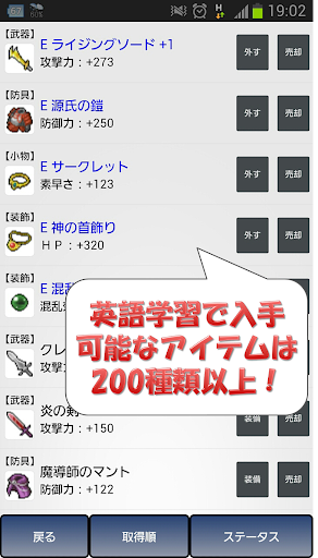 正解数に応じて、ゲーム内のキャラクターが成長したり、キャラクターが装備する武器、防具、装飾品などを入手することが出来ます。