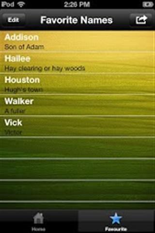 现在更具吸引力的外观和时尚的设计,给小宝宝的英文名及其含义。还可以建立您最喜爱的名称“列表中,它与您的朋友和家人通过电子邮件和Facebook分享。