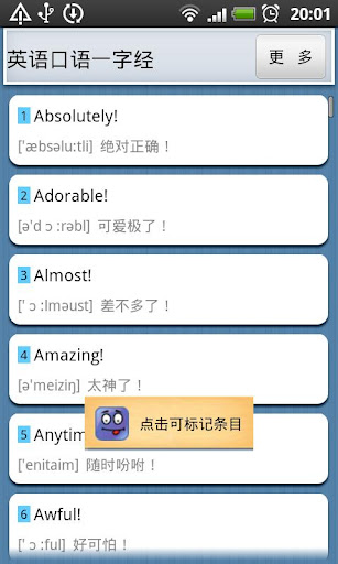英语口语一字经,一个字的对白:) 《英语口语一字经》精选百余句单字对白系列,惜字如金,字字精彩!简短给力的单字对白,从您的嘴蹦出来,那就一个字:Flesh! (帅!)