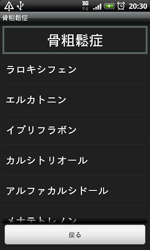 ・一覧:リスト表示で薬品名、作用機序等を見られます。