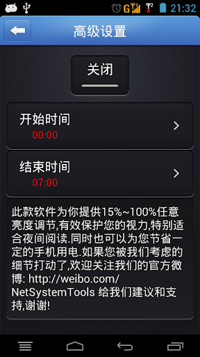 你也可以設定開啟/關閉夜間模式的時間,一旦設置完成,達到設定時間時,夜間模式將自動的打開/關閉。免去手動開啟/關閉夜間模式的煩惱。