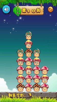 一款简单好玩的消除类游戏,游戏中你可以在规定的次数内拖动任意的蘑菇上下左右的蘑菇进行交换,如果下面没有东西当然就会掉落下去,当有三个或三个以上的相同蘑菇便可消除,消除完所有的蘑菇即可过关。