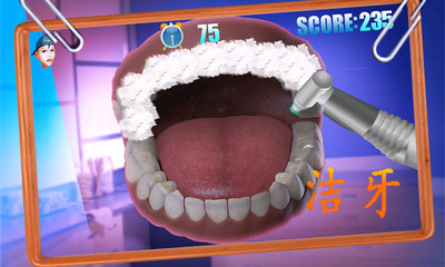 这是首款最专业,最全面的虚拟牙医游戏。这款游戏完全是原创,包含了钻牙,镶牙,拔牙,洗牙,除牙渍,补牙,洁牙,x光,等多个游戏点,这个游戏共有12个关卡,在这个游戏中你就是一名牙医,帮助12名不同的患者解决口腔问题。每名患者的病情各不相同,你需要精准的控制这些专业的牙医工具,如果有什么不明白的地方请参考帮助菜单,它会告诉你如何选用这些工具,你需要在指定的时间内完成对一名患者的治疗,如果完成的效果不好或者时间超时,你将不能通过关卡,无法对下一位患者进行治疗,在这个游戏中你将学到如何补牙,镶牙,钻牙等各种专业知识,所以在你作为一名虚拟牙医的同时,你将了解许多关于口腔方面的知识,在娱乐的同时有助于你保护自己的牙齿。这款游戏有以下几个重要特征: