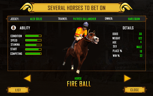 你一定会找到赛马上瘾,有趣和令人兴奋。 “虚拟赛马冠军”可男孩,女孩和成人同样可以享受。祝你好运,成为赛马的冠军。
