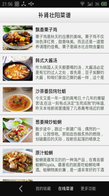补肾菜谱大全,提供上百道补肾的饭菜的详细制作方法,可以离线收藏,在没有网络的时候也可以使用。