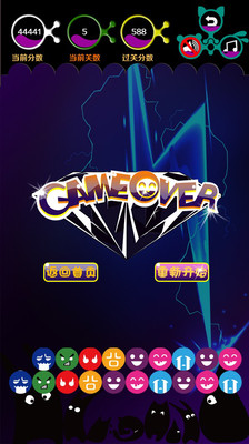 玩法:相邻的两个相同的表情即可消除,同时消除的越多获得的积分越高,随着等级的增高会有更多搞怪的表情出现,过关后剩余的表情越少,赠送的积分越多。快来挑战吧!