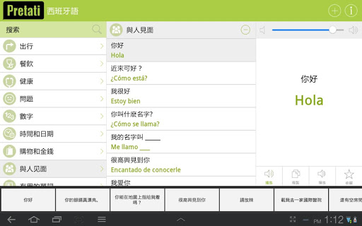 Spanish Pretati應用非常適合外國旅客和那些想學習西班牙語的人。該應用擁有500多個常用短語,覆蓋10個不同類別,包括基礎知識、出行、餐飲、健康、問題、數字、時間和日期、購物和金錢、與人見面和其他有用詞語。