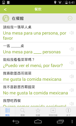 該應用為希望墨西哥或中美洲旅行、學習西班牙語或者以西班牙語交流的所有人設計,擁有輕鬆搜尋功能、收藏常用短語功能和便於閱讀的音頻翻譯,是一款值得擁有的卓越應用。
