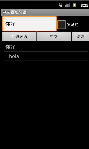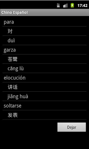 西班牙語普通話 - 中國(拼音)詞典 - 旅行字典翻譯西班牙語普通話顯示一個字漢語拼音(漢語拼音)普通話或普通話字符列表。這本字典也從普通話或普通話拼音譯成西班牙語的翻譯。從反向翻譯的翻譯列表複製一個字可以用來尋找同義詞,了解更廣泛地使用西班牙語的普通話字。雖然西班牙的國語辭典不提供定義或例子,在這樣的翻譯軟件的使用提供了機制,以更好地了解在西班牙的情況下普通話的話,而不需要的定義。 35K參考。