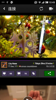 +分享:一键分享到社交网络,包括Facebook、Twitter、YouTube以及Tumblr,可以添加卷标和地理标记。或者通过电子邮件或短信分享。