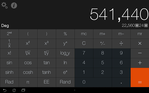 • 提供兩種模式:以縱向模式進行基本計算,或者把你的智慧型手機、平板等行動裝置擺放成橫向模式,進行進階計算