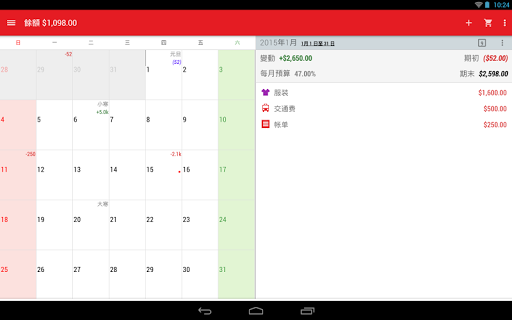在選定時間自動提醒輸入收支,不會忘記。圖案鎖可保護隱私。內建月曆功能,可提示節日。你可備份到Google drive云端硬碟,不會丟失記錄。 它可顯示收入、支出、余額的統計圖表。附計算器,輸入時可作簡單計算。