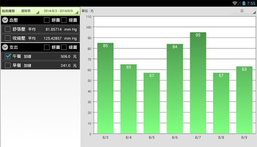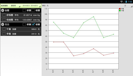3.可記錄任何資料, 收入, 支出, 身高, 體重, 血壓, 運動項目...等