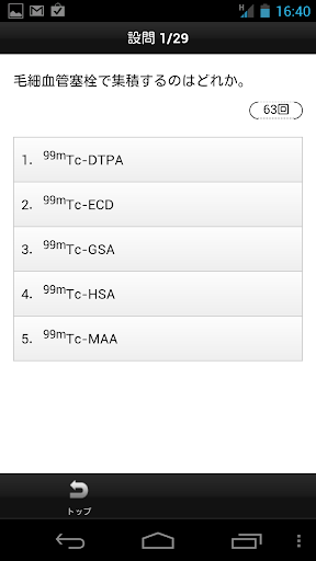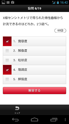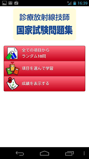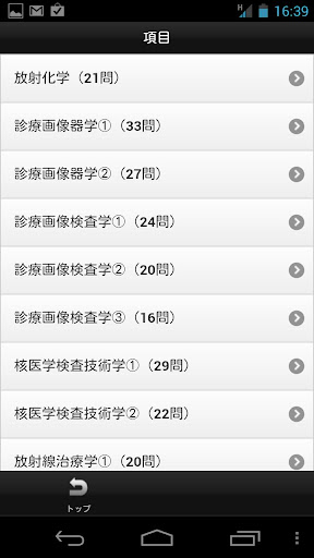 本アプリは『診療放射線技師国家試験問題集』(医療科学社)より,766問の精選問題(第59回~第66回)を,項目別に再構成した内容になっています。