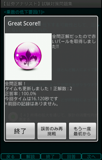 このアプリは2013年10月に行われる公益社団法人 日本証券アナリスト協会主催の証券アナリスト(CMA)の試験対策アプリです。