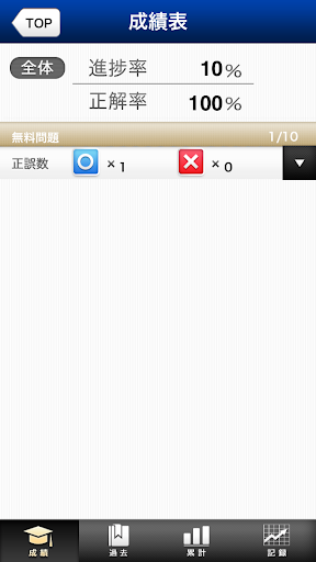 科目ごとに学習進捗率や正誤数を確認できます。学習時間も記録しており、自分がどれだけ学習したかランキングを知ることも可能です。