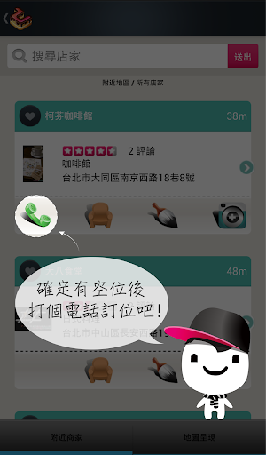 • 撥打電話:在 App 內撥出電話,聯絡店家沒煩惱