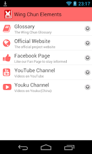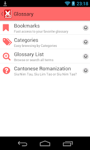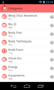1) 最完整的詠春詞彙表,每個詞彙提供中英解釋及真人錄音粵語。大部份詞彙配有圖片。如選擇升級可使用書籤及分類瀏覽功能。