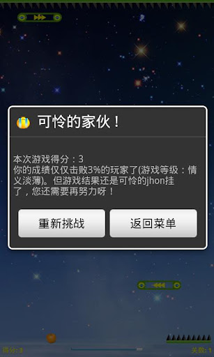 - 游戏下方有三状态(得分、生命进度条、关数),关数越高游戏的难度越大。