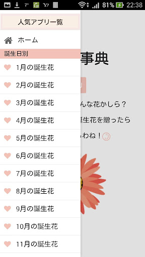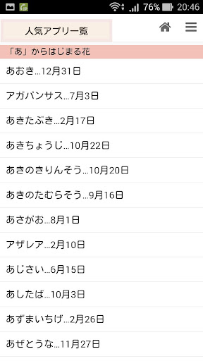 誕生月をタップするとその月の誕生花が一覧表示されます。また、花の名前から逆引きで調べることもできます。例えば、チューリップは何月何日の誕生花なのか?を簡単に調べることができます。