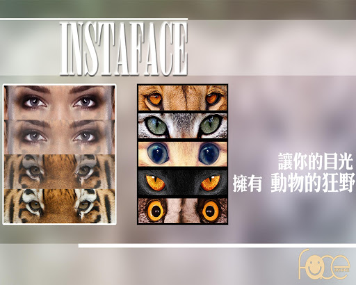 ★ 你還可以將照片的眼睛部分,更換爲動物眼睛,形成奇妙的對比效果,我們同樣提供了10種動物眼睛,供你使用;