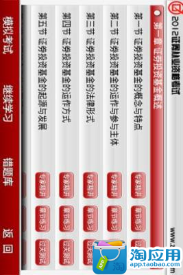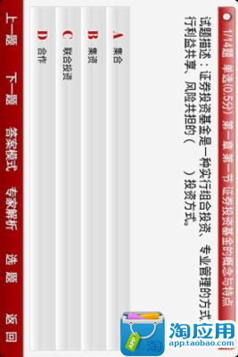 《证淮右底矢窨际-投资基金》——针对证淮右底矢窨际运定制的专业辅导软件。 不用再花钱报班学习,不必周末时痛苦的早起赶去听课,不用到处收集教材、划定范围、圈点重点,软件打开后全在里面了,随时随地可开始高含金量的学习。 专业从事证券教学企业,凭借多年经验,制定出一整套高效的自学方法,让学员在有限的时间内尽量轻松的消化吸收每个知识点。 软件功能强大,采用视频、章节练习、过关测试及模拟考试等多重手段强化学习。专家视频讲座是本软件的独特亮点,建议您使用WIFI下载后观看。在章节练习环节遇到不会的题目,您可以通过“专家解析”功能获取到该题目的解释说明和标准答案。在过关测试和模拟考试环节,没有“专家解析”的功能,只有点击“完成考试”后,才能再次使用“专家解析”功能。 “继续学习”和“错题库”等功能帮您轻松管理学习进度。 经追踪统计,使用软件学习的学员考试通过率超过没使用软件的35%,学习时间缩短一半。