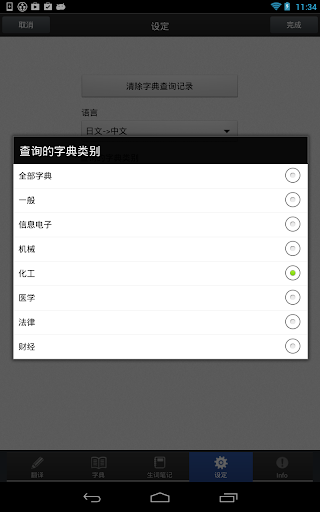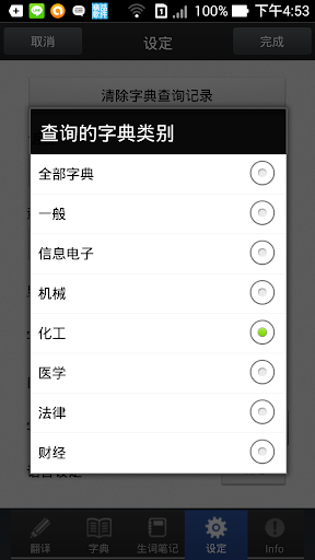 提供信息电子、机械、化工、医学、法律和财经等六类专业字典让您翻译或查字典时使用。