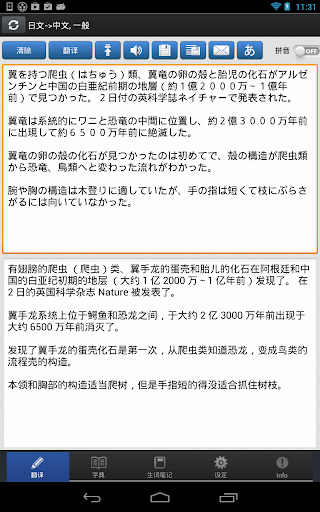 使用与PC翻译软件同等级的翻译引擎,提供高品质的日中双向翻译,