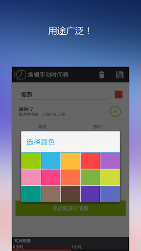 时间表放在2个标签下,一目了然:分别是计划和手动。可创建一个计划时间表并设置当天的具体报时时间。例如周一到周五下午3时至下午5时每隔10分钟报时。