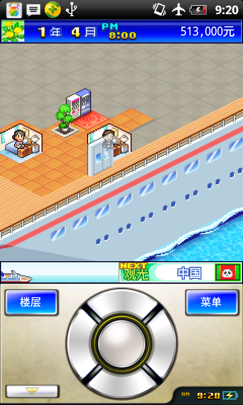 开罗公司(Kairosoft)出品,一款经营豪华游轮题材的模拟经营游戏,完全中文版.邀请世界名人吧!向着世界各国首脑都为之赞叹的五星级大油轮进发!建造豪华浴池,娱乐场所和餐厅等设施来打造人气观光旅行.环游世界的过程中,还有可能入手精美的绒毯等物品.根据设施和物品间相互的影响,客人的满足度会不断上升!招待每半年来一次的审查员,根据他们的满意度会给游轮评定星级.还有可能招待国王喔...自由地规划船内设施,打造高贵优雅的豪华游轮吧!