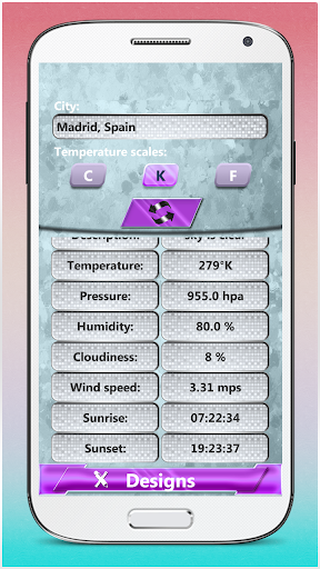 這表明天氣溫度時鐘目前非常流行的,他們有不同的顏色和設計。然而,這其中肯定是最漂亮的,其豪華的數字時鐘模式。我們已經創建了10奢侈的天氣和時鐘部件,其中五個被解鎖。當你下載這個每小時的天氣小工具,你可以選擇自己喜歡的世界時鐘部件,美化你的手機屏幕,它的最豪華的方式。讓你的手機屏幕看起來冷艷精緻的最佳每小時的天氣預報應用程序。我們向你保證,這個世界上的天氣預報和時間部件為您提供精美的圖形設計和直觀的觸摸屏控制。
