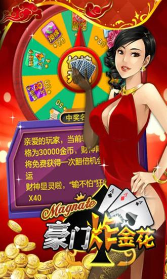 ★炸金花又名赢三张/三张牌、诈金花、金花、扎金花、天天砸金花,全国最火爆最刺激的“豪门赢三张”游戏强势来袭!!!超刺激爽快的游戏体验,海量的奖品,劲爆的赛制,华丽的翻倍。 画面精致,容易上手,挑战你的智慧与运气极限。