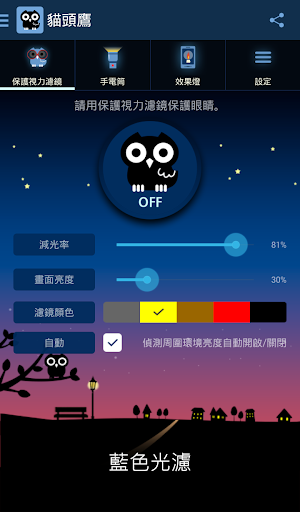免費玩貓頭鷹 - 藍色光濾保護視力波器、手電筒、效果燈 APP玩免費