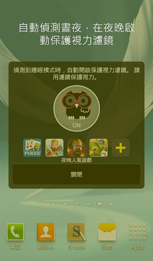 - 自動偵測晝夜,在夜晚啟動保護視力濾鏡。