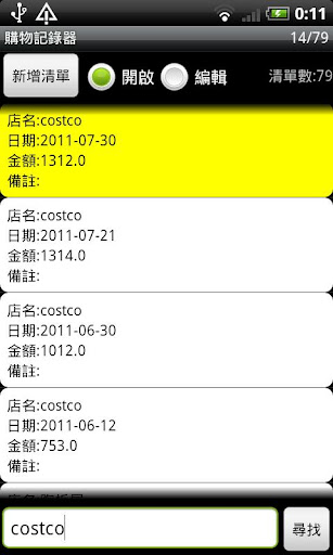 購物記錄器將可為您回答上述問題而且幫您在購物時記錄目前已花費的總金額使您在結帳前便可確認是否帶夠錢,您使用這個軟體時只要在東西放進購物車前用手機讀一下條碼即可自動登錄品項相關資料,使用者只需修改購買數量或單價即可(第一次購買的品項需先建基本資料後方可於日後使用)