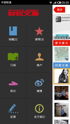 《财经文摘》是海内外第一本中文财经类文摘杂志,创刊以来,以其精准的定位迅速在财经媒介界崛起。编译采撷全球最精华的财经文章,所选文章均来自于海外知名大刊,作者权威,观点极具影响力。反映国际社会对中国政治和经济状况的整体评价。以独特的角度重新剖析热点话题,言论尺度大,敢于发出不同于其他媒体的声音;综合各家之言,向您展示同一问题的不同角度。从而传递给读者最权威的财经信息,赢得了众多企业中高层管理者、决策者、学者等高端社会群体的青睐。