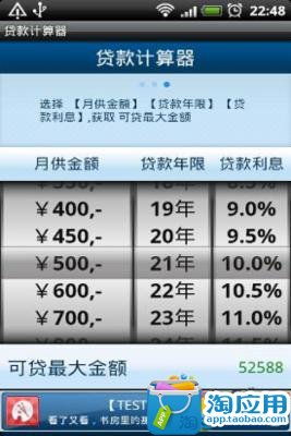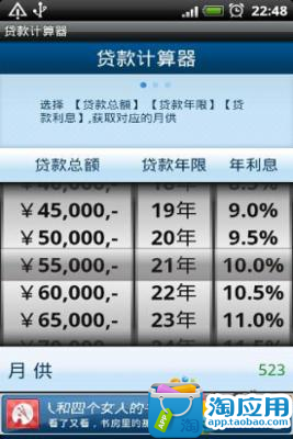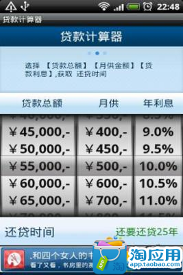 亲 ,简单界面,无需输入,手指划一划,快速的计算月供,贷款时间,贷款总金额。方便你分期付款,房贷等计算查询,是手机中的必装软件