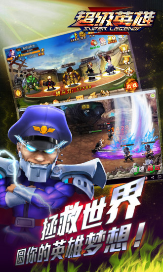 《超级英雄》是国内首款冒险卡牌手游,聚集了全球最热门的英雄大胆创新,融合了回合制的战斗机制,完美还原英雄们的成名技能!各种英雄技能超炫华丽,超酷的视觉冲击及打击感精致入微!钢铁侠、美国队长、绿巨人、蝙蝠侠、绿箭侠、超级赛亚人......全宇宙最热门的超级英雄,正在集结!为了捍卫世界和平,在这里他们将成为你的队友,和超级英雄们一起并肩作战!为了梦想!为了世界和平!英雄们,热血战斗吧!