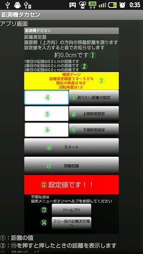 ⑤測定距離記録機能(アプリ終了時に記録消去)
