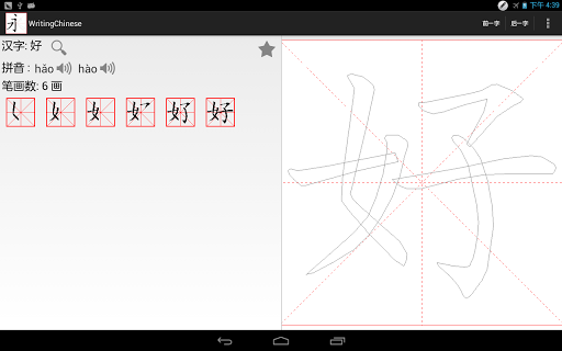 本软件是一个实用的汉字书写学习软件,它可以帮助你学习汉字、掌握汉字的笔顺和书写方法, 软件提供自动演示示范,书写校正功能,还可以记录学习过的汉字,通过练习,可以让你写出规范、美观漂亮的汉字。