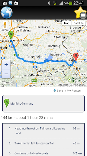 尋找最簡單和最快的旅遊路線到達目的地。將您的出發點和目的地 - 並直接獲取自定義的路線圖 - 在5月或行車路線。