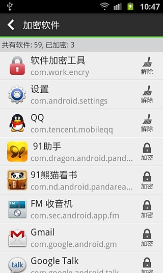 您手机使用的软件是否有很多隐私,像天猫,浏览器,qq,微信,这一类软件,有很多您使用的记录,或者是您跟您的朋友聊天的记录,里面有很多您不想被别人知道的信息,对这些软件进行加密,保护好您自己的隐私,使用这款软件加密工具,让您使用这些软件更加安心,您可以任意选择手机上的软件进行加密。