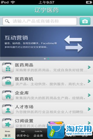 辽宁医药平台提供了医药的最新资讯和医疗器械、药品等的供求信息、行情走向等。 我们可以在平台上发布医疗用品的供求关系,可以对自己的商品进行推广。现在只要通过辽宁医药平台手机客户端,就能轻松找到各种您需要的医疗用品信息。辽宁医药平台为商业人士和广大朋友与我们进行全方位的友好合作,让我们能够更好地为客户及其医疗行业在国内,国外市场打开知名度;使企业商能迅速地掌握最新医疗资讯,为客户带来无限精彩! 特色功能: 1.旺铺:所有医药及相关行业商家均可在平台上发布信息、合作需求。 2.推送:您的生意动态,系统会自动推送到您的手机端,让您随时掌握。 3.自助推广:多种推广方式,产品宣传不用愁。 4.平台打通:任何用户可以用新浪微博、腾讯微博等其他常用账号登陆平台,方便记忆,让您的沟通更加顺畅、便捷与高效。