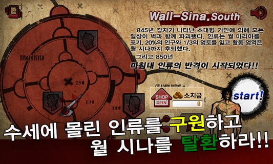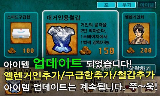 《进击的巨人:防御》是一款由韩国个人开发者制作的休闲小游戏,在城墙上防御不断进击的巨人吧。玩家可以点击屏幕用炮弹射击,或者划动屏幕去用刀切割巨人,不断去斩杀巨人防御城墙,并有动画OP和ED陪伴你游戏。