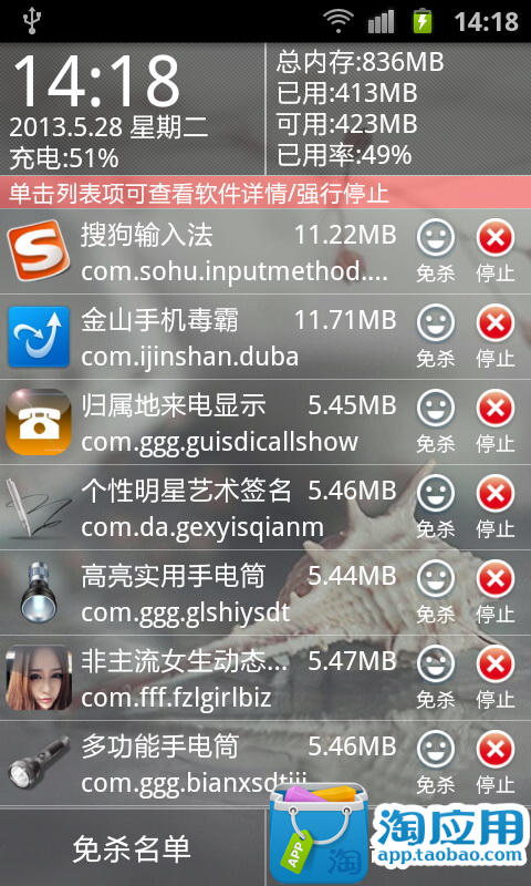 3.可查看手机内存的使用情况