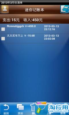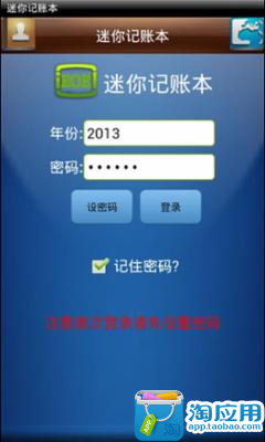 迷你记账本:通过对个人财务进行记录,查询,删除,统计,强大的报表系统,(柱状,饼图,曲线图)等。本软件让您清楚您的账目,能够合理的理财,让您幸福,让您.........你懂的!