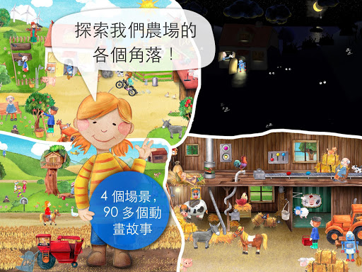 ++整個遊戲共有4個場景,當中包含有90個隱藏動畫及物品,孩子和父母能一邊體驗農場生活,一邊發掘一個個精心構思的瘋狂故事!
